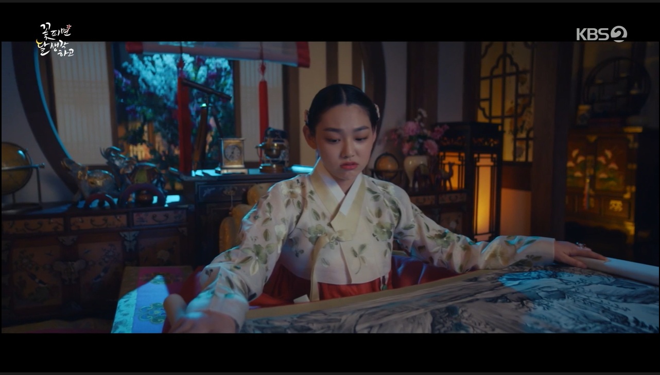 한애진은 금강산을 가고싶어했어요. 하지만 계집이라 금강산에 갈 수 없는 신세를 한탄하고 있었습니다. 강로서와의 일화를 떠올리는 모습이었죠.