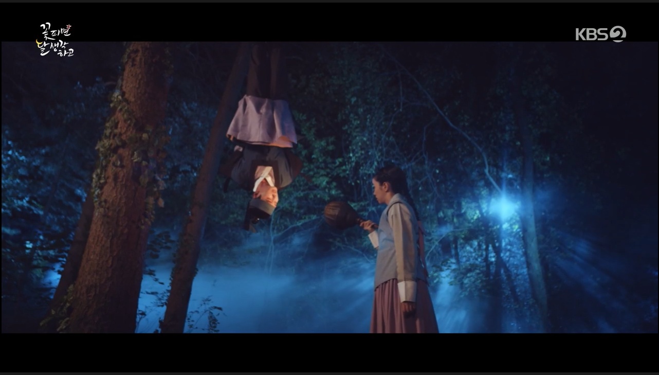 결국 김석원은 불손하다며 남영을 나무에 매달아버렸어요. 이런 남영을 산 속에 숨겨둔 술 항아리에서 술을 떠오던 강로서가 발견했죠. 강로서는 투덜대면서도 남영을 풀어줍니다.