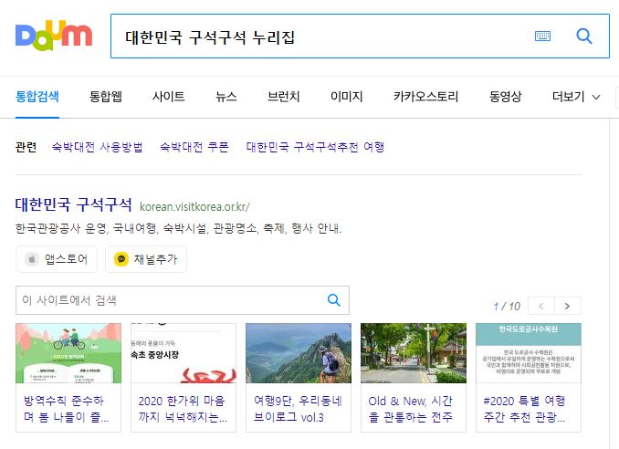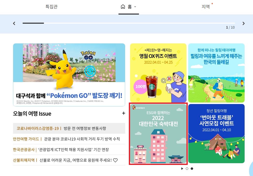 전국 숙박 할인권 발급을 위해서는 위의 각 사이트에서도 대부분 배너를 띄워 홍보를 통해 진행을 하겠지만, 대한민국 구석구석 누리집에 접속하셔서 확인하시는 방법도 있습니다.