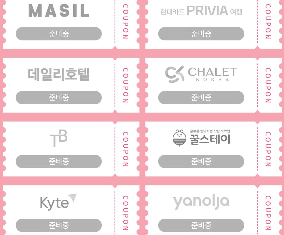 숙박 할인권 받으러 가기 버튼을 클릭해보시면 이번 전국 숙박 할인권에 참여하는 사이트로 연결될 수 있도록 나올거에요. 아직은 발급 기간 이전이기에 준비중으로 나오지만, 4월 7일 이후에 접속해보시면 해당 링크를 타고 각 여행 예약 사이트로 넘어가실 수 있을거에요.