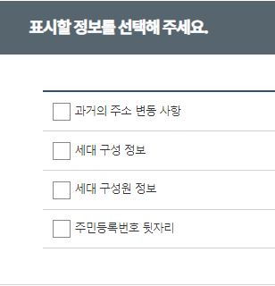 선택발급으로 나타낼 수 있는 항목은 과거의 주소 변동 사항, 세대 구성 정보, 세대 구성원 정보, 주민등록번호 뒷자리 이렇게 4가지이며 이 중 원하는 정보만 선택하셔서 발급 받는것이 가능합니다. 따라서 과거의 주소 변동 사항을 나타내기를 원하신다면 선택발급에서 과거의 주소 변동 사항을 선택하고 발급을 받으셔야겠지요.