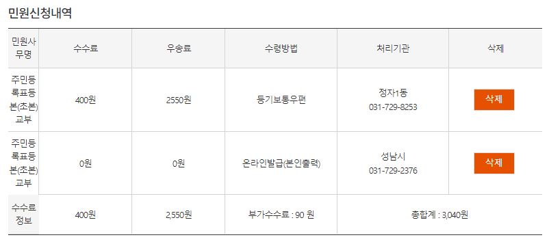 일반보통우편의 경우 수수료 400원, 우송료 450원, 부가수수료 90원으로 총 940원이 발생하게 됩니다.
