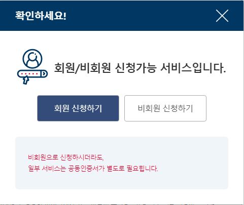 회원가입 후에는 간편인증이나 공동인증서, 금융인증서를 통한 로그인이 가능해요. 저는 간편인증 카카오톡으로 로그인을 진행 해 볼게요.