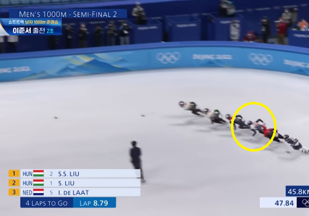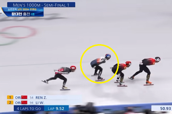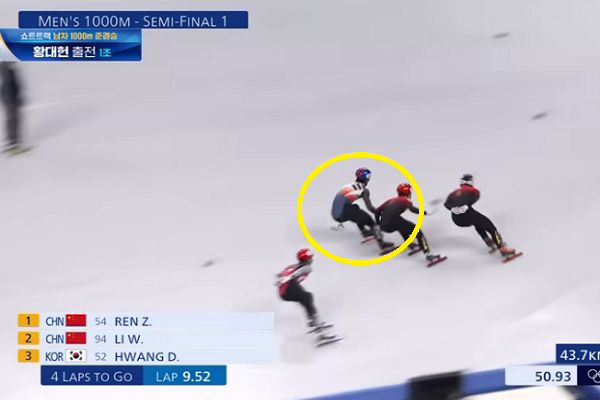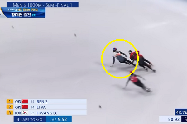 이 경기를 보면서 황대헌 선수의 깔끔하면서 완벽한 플레이에 감탄하지 않을 수 없었는데요, 하지만 결과는 어이없는 패널티. 레인을 변경하면서 반칙을 범했다는 것 이었는데요, 이 결과 중국 선수 두 명이 준결승에 진출하게 되었습니다.