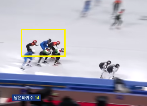 황대헌선수는 준준결승 1조로 경기에 나섰는데요, 중국선수 2명, 터키선수 1명과 함께였어요. 중국 선수 2명은 초반부터 1,2위의 자리를 차지하고는 자리를 내주지 않으려 견제하는 레이스를 펼쳤는데요. 4바퀴를 남긴 상황에 황대헌은 완벽에 가까운 깔끔한 추월을 해냅니다. 중국선수와는 전혀 접촉도 없었죠.